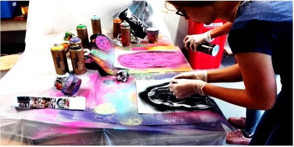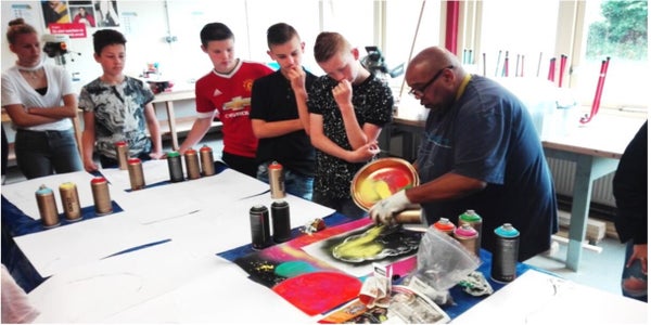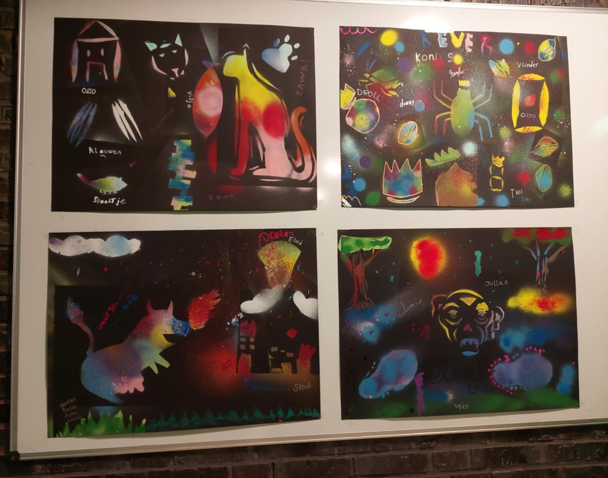 - Jullie krijgen uitleg over de spuitbussen, materialen en de veiligheid