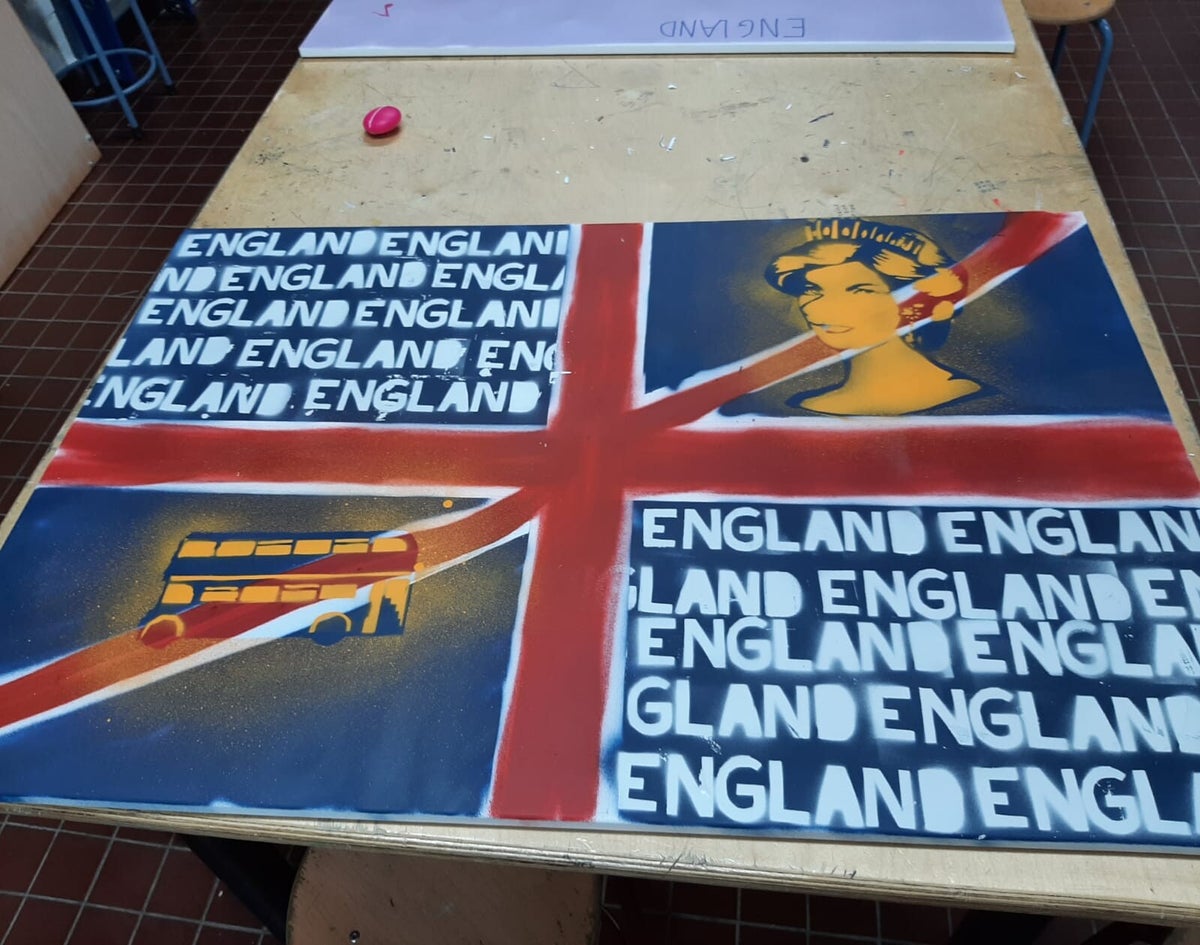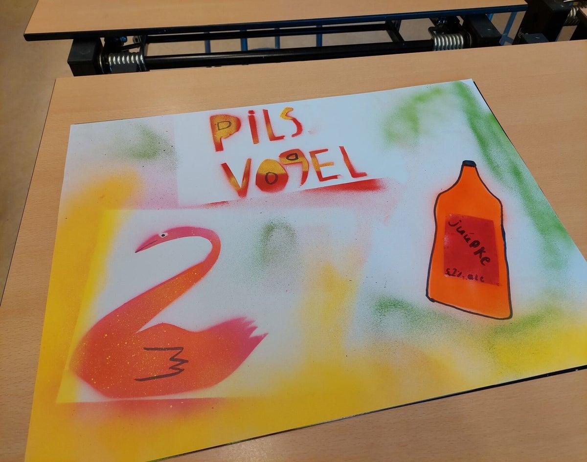 En de les waar de stencils al vooraf zijn gemaakt. De leerlingen die misschien wat jonger zijn of andere omstandigheden hebben. Mogen nog niet met de mesjes werken. Deze zijn vlijmscherp!
