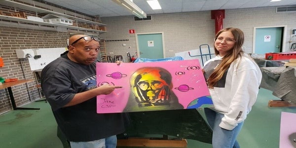 Wij zijn meneer Lloyd en Juf Tessa van Cultuurgeluid. Jullie gaan deelnemen aan de workshop Stencil Art. Luister en kijk goed!
