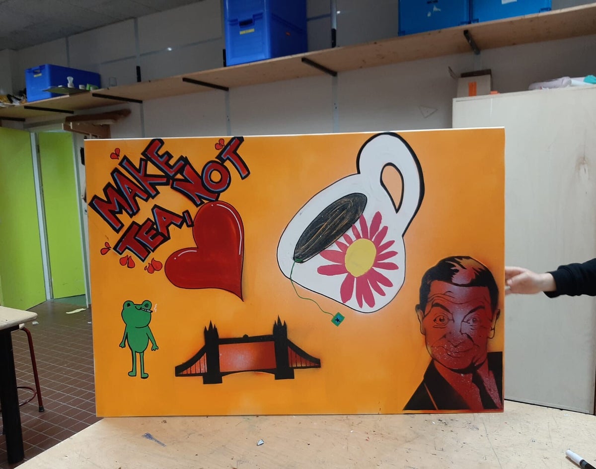 - De groep overlegt hoe het thema eruit gaat zien en met acrylstiften schrijf je dit op