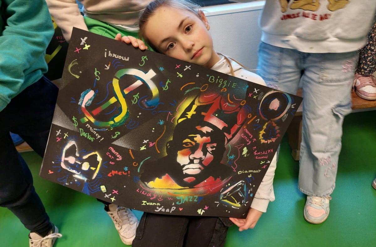 De les start met een interactieve kennismaking. Daarna krijgt de groep zwart witte stencils met mensen uit de wereldgeschiedenis. Dit betreft muzikale, politieke, maatschappelijke en culturele helden. De docent legt vervolgens uit wie de helden zijn Dan begint het kleurenspel. Het lijkt net een galerij van "Andy Warhol". Mooie felle kleuren, een verhaal en 3D.