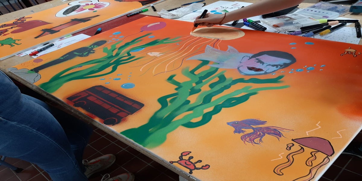 Tijdens het maken van de stencils kan de groep nieuwe technieken bedenken en uitvoeren.